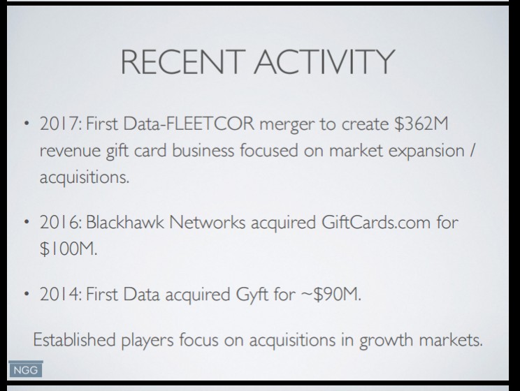 Ggf. entwickelt man die Firma weiter und verkauft diese in einigen Jahren wieder an einen Interessenten. Joe Bergeron hat im Rahmen seiner Präsentation bei der HV im April 2018 entsprechende Beispiele vorgestellt, wo Geschenkkartenunternehmen erfolgreich verkauft wurden.