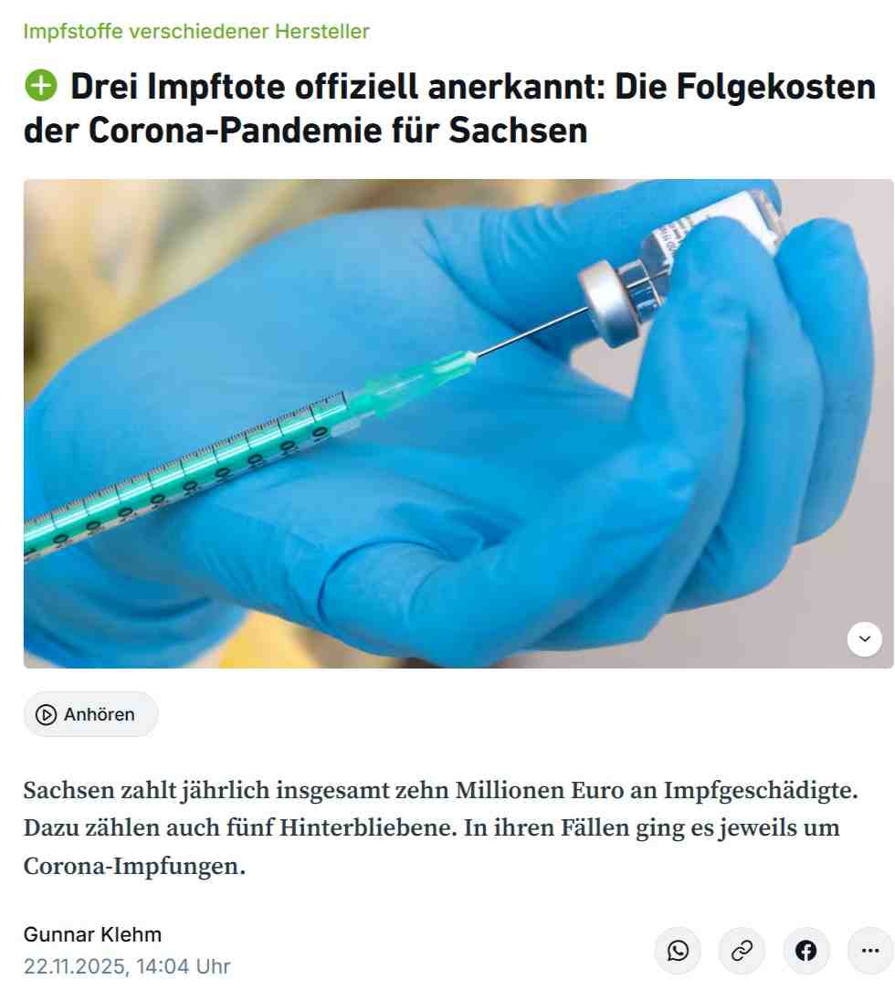 Lauterbach hat damals davon gesprochen, dass die Impfung völlig lebenswirkungsfrei ist und jetzt wendet man hier eine Salamitaktik an, in dem zugegeben wird, dass bereits 10 Millionen Euro für Impfschäden für Impfgeschädigte ausgegeben wurden. Was dann wiederum ein Eingeständnis ist, dass es Schäden (das richtige Ausmaß ist noch nicht zu beziffern) diesbezüglich gibt, die mit dieser neuen Experimental- mRNA- Impfung im Zusammenhang stehen, also im Kontext dazu. Man darf nun wirklich sehr gespannt sein, wie sich das Entschädigen der Geschädigten weiterentwickeln wird. Hoffentlich ist die Dunkelziffer nicht allzu groß.