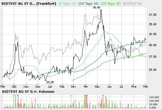 Auch für Finanzinvestoren könnte Biotest ggf. interessant sein (z.B. zwecks Umstrukturierung, d.h. Verkauf der Diagnostiksparte, Verkauf der Biotechsparte, Konsolidierung des Plasmamarktes etc.).