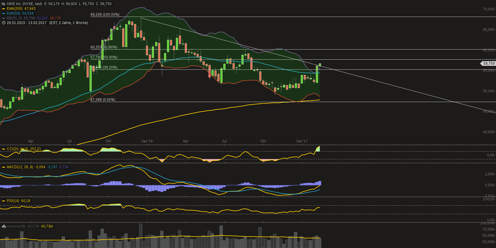 Denn selbst bei 60$ wäre NKE noch 15% unterm Ihrem Hoch...während der DOW schnurstracks auf satte 21.000 geht.