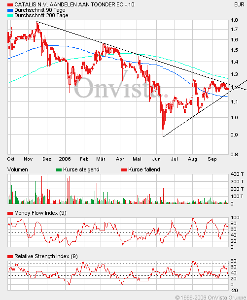 Derzeit befindet sich Catalis nämlich noch klar im mittelfristigen Abwärtstrend, der zusammen mit der 200TageLinie in diesem bereich bei 1,27-1,28 liegt. Außerdem war dort das Hoch des letzten Anstiegs.
