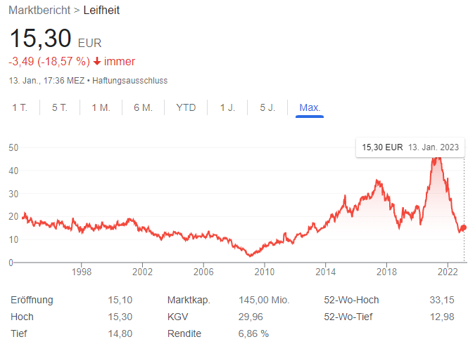 Ich persönlich würde aus diesen Gründen die Leifheit-Aktie derzeit nicht kaufen, wenn überhaupt bei einer weiteren Korrektur.