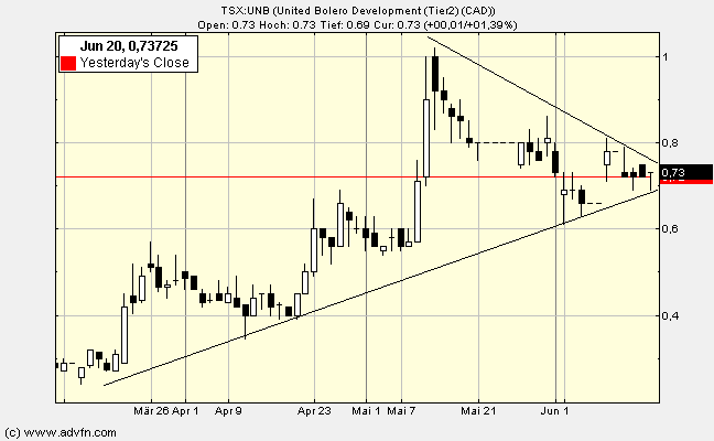 Es geht los. Der Ausbruch ist im Gange und folgt bald gewaltig. Wenn die Anlager merken, dass bei United Bolero was geht, wollen Sie auch auf den Zug aufspringen und jagen der Aktie hinterher. NEWS werden bald folgen. Der Ausbruch beginnt.........
