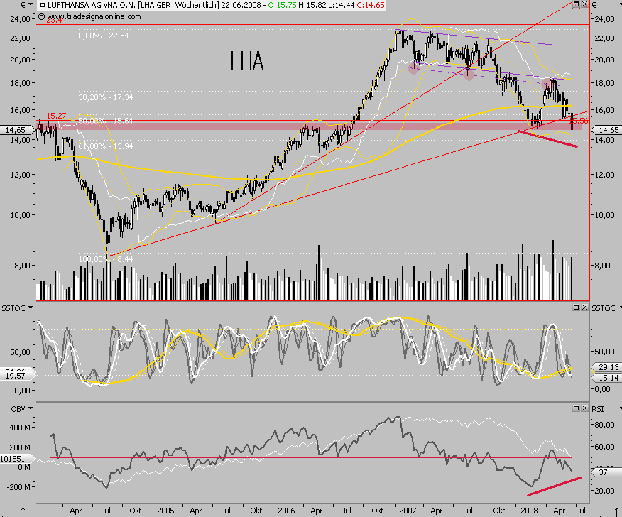 Ergo, LHA wird der Gewinner der Konsolidierung sein und fliegen wird man auch zukünftig, egal wo der Ölpreis steht. Und mit jedem Anbieter, der sich vom Markt verabschiedet, wird LHA seine internationale Stellung ausbauen. Daher ist der augenblickliche Aktienkurs auf Grund der hohen Kerosinpreise vielleicht verständlich aber insgesamt eigentlich eher ein Witz. € 19-20 erscheinen mir da schon eher realistisch und es ist auch nur noch eine Frage der Zeit, bis wir wieder in diese Richtung laufen.