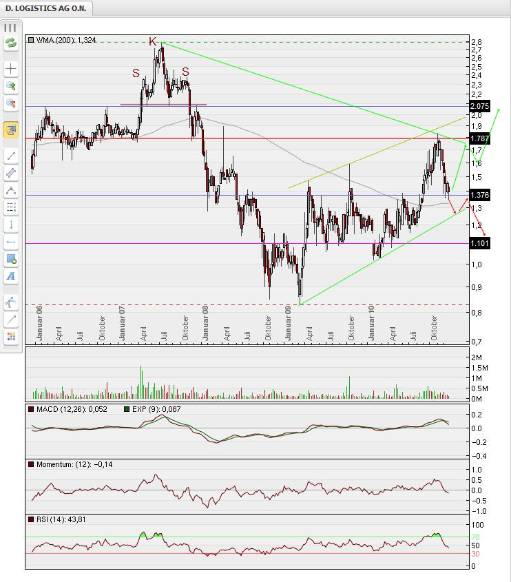 Anschließend kam es zum Rücksetzer an das Ausbruchslevel bei 1,39 - 1,47 Euro, wo sich umgehend wieder Käufer fanden. Die Aktie befindet sich jetzt in einer Stabilisierungsphase nach dem Kursrücksetzer.