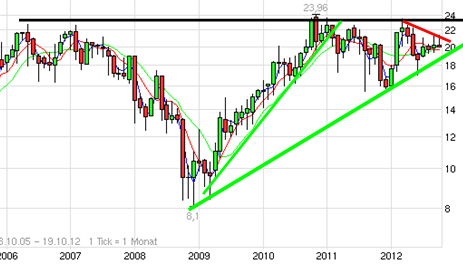 Ich hoffe echt, dass es dieses Mal ein bisschen weiter und vor allem nachhaltiger nach oben geht. Vielleicht schaffen wir ja endlich mal den Sprung über die 24€. In den nächsten Tagen wird aber bestimmt auch noch mal ein Rücksetzer kommen.