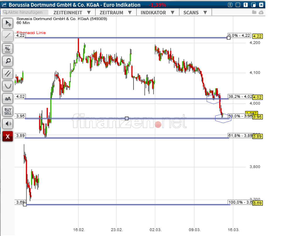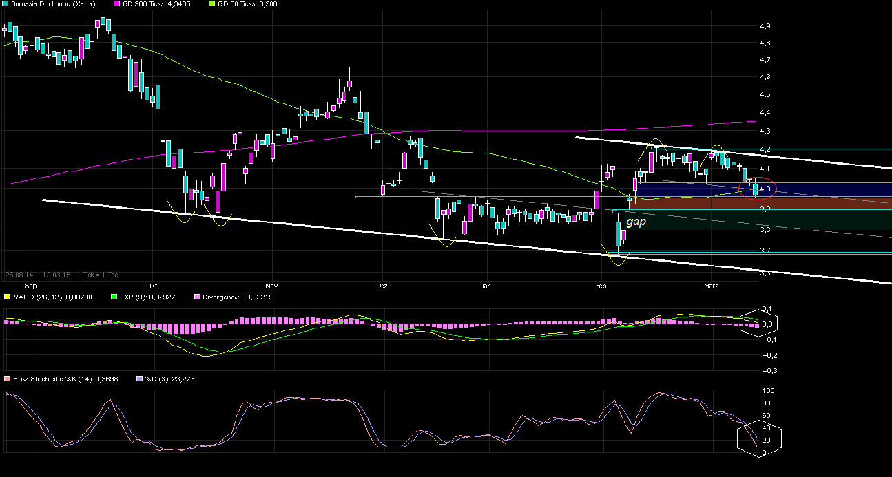 ... Wenn BVB aus der Champions League ausscheidet.... Könnte es richtig abwärts gehen, weil dann die Shorties dann erst recht nochmal Aktienpakete auf den Markt schmeißen könnten... Das heißt, daß sie auch versuchen würden, bei einem Weiterkommen gegen Juventus, den Kurs nicht zu viel steigen zu lassen.... Wenn der Bereich 3,68-3,64 nicht hält, dann geht es Richtung 3,15 - 3,30?Vielleicht kann dies ein Charttechniker bestätigen.