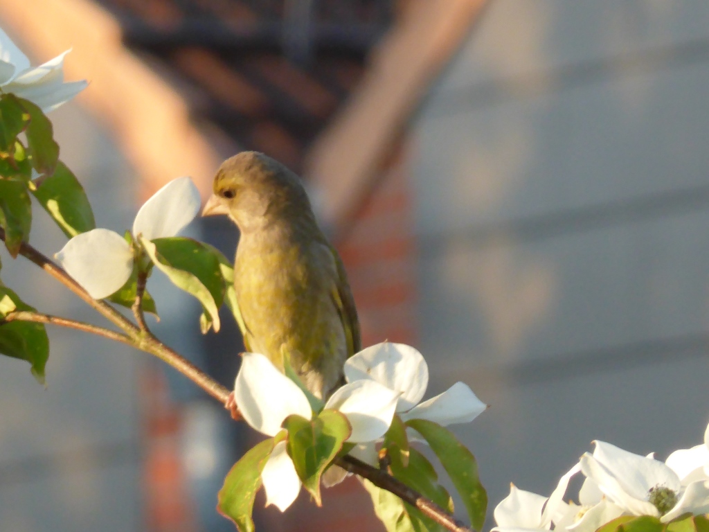 Seit zwei Tagen ist das Grünfinkenpaar zu beobachten, wie sie ihr einziges! Junges an der Futtersäule füttern. Noch ist der Schnabel des Kleinen zu weich vermute ich, da er noch nicht selber frisst. Kann man vielleicht auf dem Foto erkennen im Vergleich Altvogel zu Jungvogel