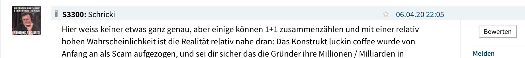 Jo, Starbucks übernimmt die Läden.. bestimmt toll für den Umsatz von Luckin. Wird etwa schon abgewickelt oder was ?