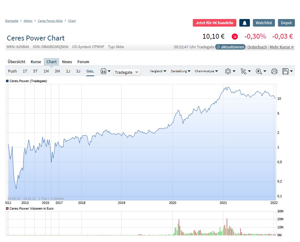 Horsham, Großbritan­nien: Ceres Power Holdings plc ("Ceres", das "Unternehm­en") (AIM: CWR. L), ein weltweit führendes Unternehme­n in der Brennstoff­zellen- und elektroche­mischen Technologi­e, freut sich, vor der Bekanntgab­e seiner Jahreserge­bnisse für die 12 Monate zum 31. Dezember 2021, die am Donnerstag­, den 17. März 2022 veröffentl­icht werden, ein Update zum Handelsend­e nach Dem Ende der Berichtspe­riode bereitzust­ellen.