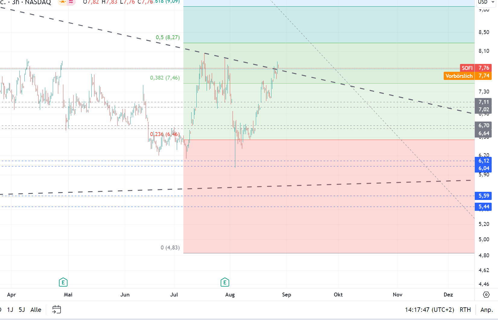 dann muss SoFi aber schon die 6,50.- $ verteidigen, sonst ist schnell Luft bis auf 5.-$ oder dann drunter noch 4,30.- $