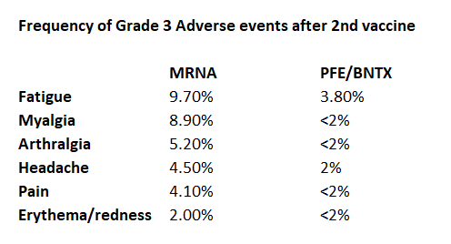 „Eine Untersuchung der entblindeten Daten zur Impfstoffreaktion in einer randomisierten Subgruppe der finalen Phase-2/3-Analyse mit mindestens 8.000 der über 18-jährigen Probanden zeigte, dass der Impfstoff gut verträglich ist. Die meisten Nebenwirkungen traten nur vorübergehend auf. Die einzigen schweren Nebenwirkungen (3. Grades), die in mehr als 2 % der Probanden nach der ersten oder zweiten Impfung auftraten, waren Erschöpfung mit 3,8 % sowie Kopfschmerzen mit 2,0 % nach der zweiten Dosis.“(Meldung vom 18.11.2020)
