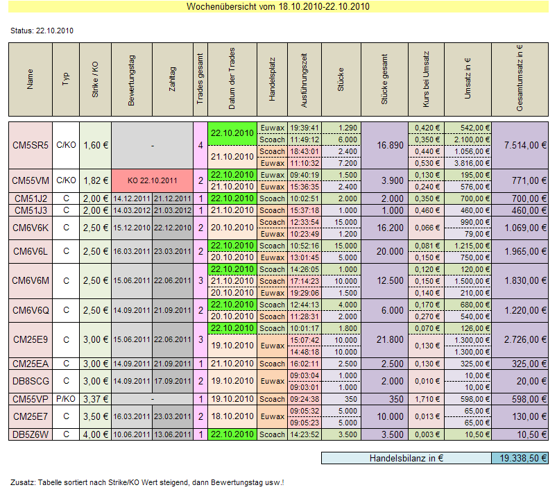 So, und hier die Tabelle der Wochenstatistik 18.10.10-22.10.10