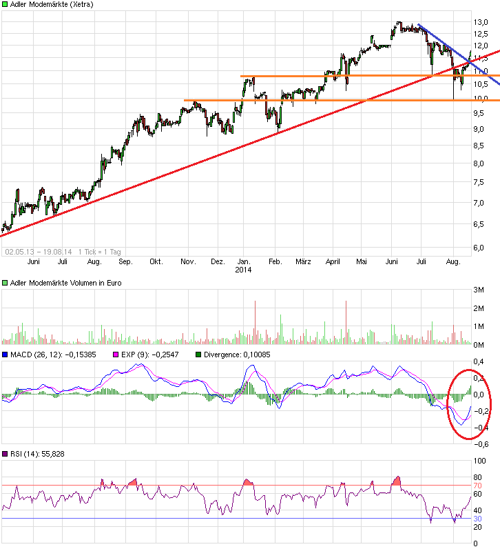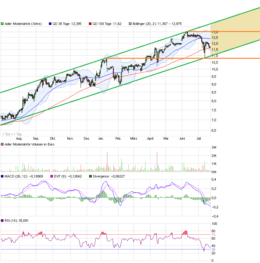auf die guten Zahlen reagiert. Okay, es gab den Rückgang am Gesamtmarkt, aber grundsätzlich wäre hier ein stärkerer Kursanstieg möglich. In Modesegment für mich als reiner Finanzanalyst die spannenste Story, auch wenn Adler nicht so sexy klingen mag. Hier gehts aber um handfeste Zahlen und Perspektiven. Die scheinen mir bei Adler weit interessanter zu sein als anderen Werten der Branche.