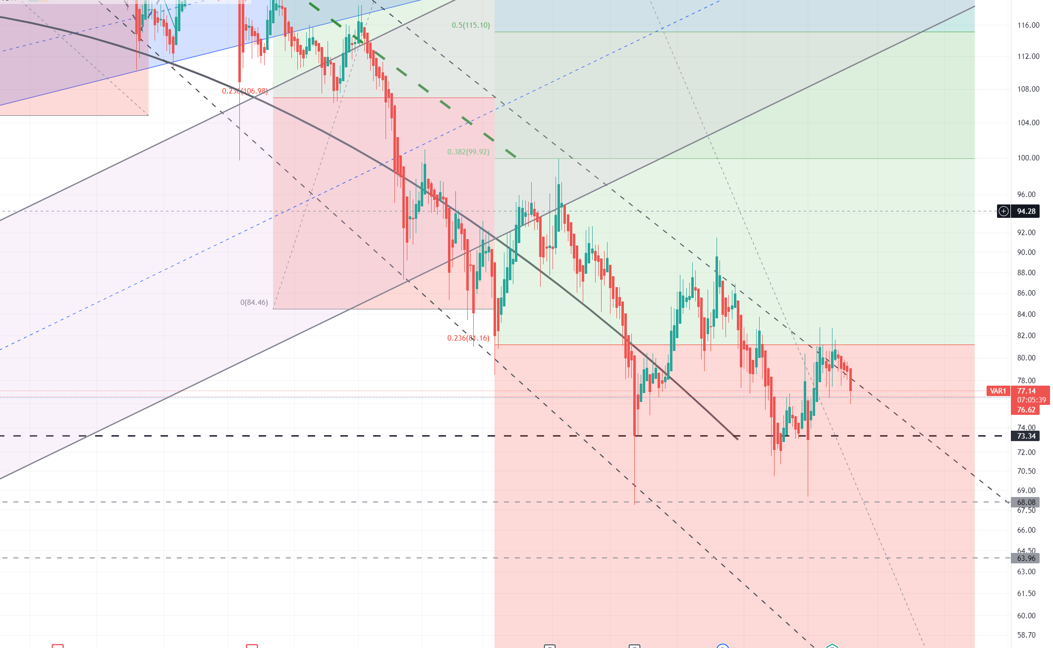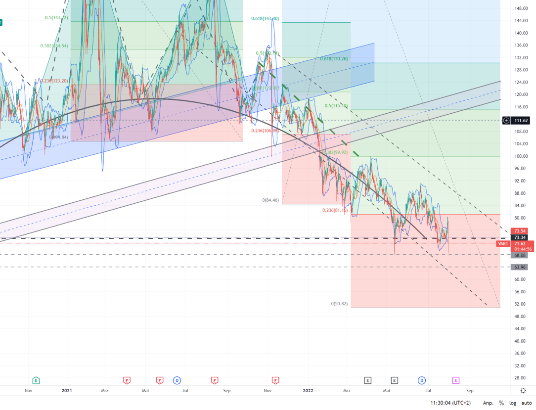 Varta ist aktuell zu zeitraubend. Nurmal so zum Vergleich das unterste Retrace bei Covestro hat 72% Range. Beide haben einen Bogen im Chart und auf bei wirkt der Gashammer.