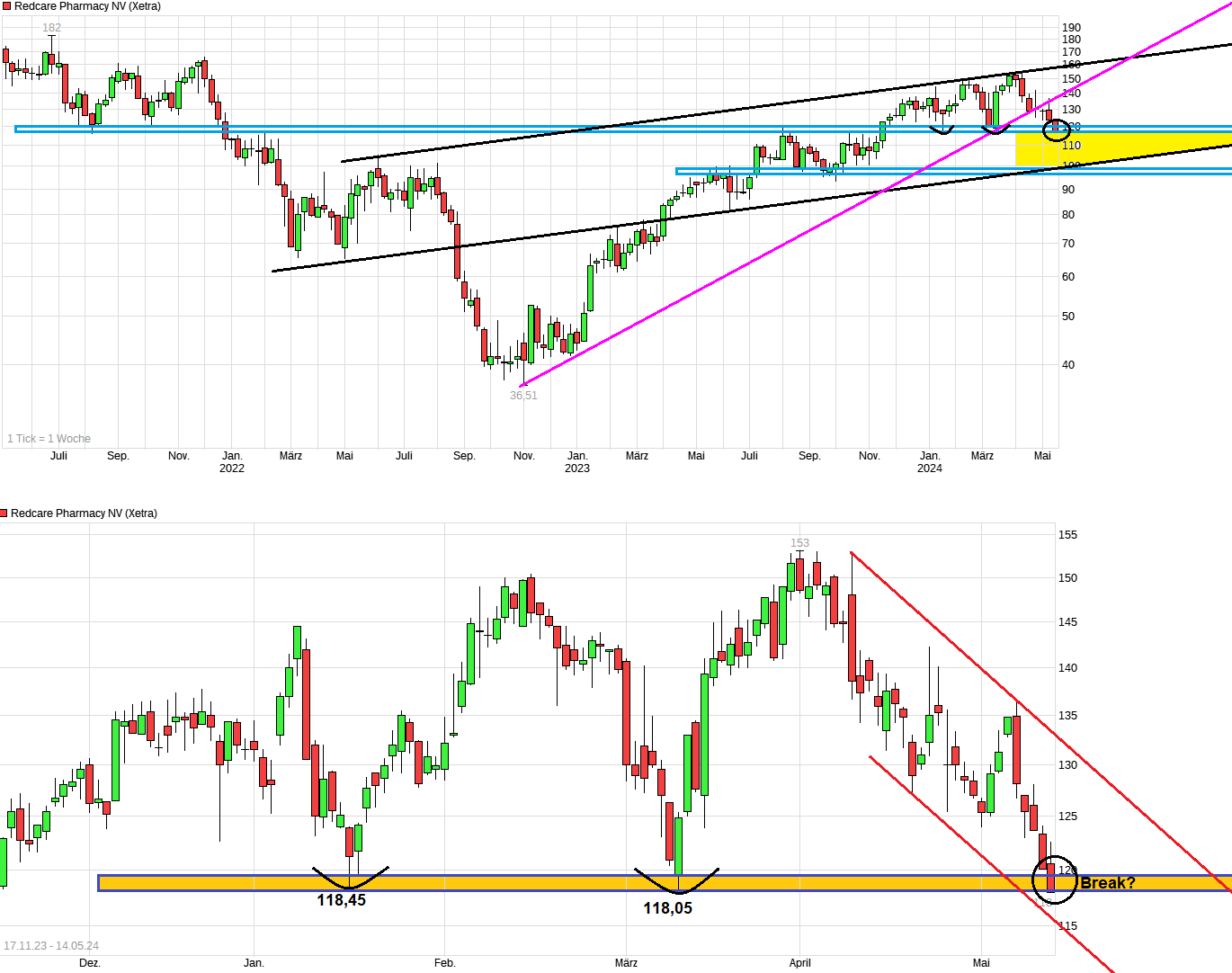 Fällt die Unterstützung bei 118?
