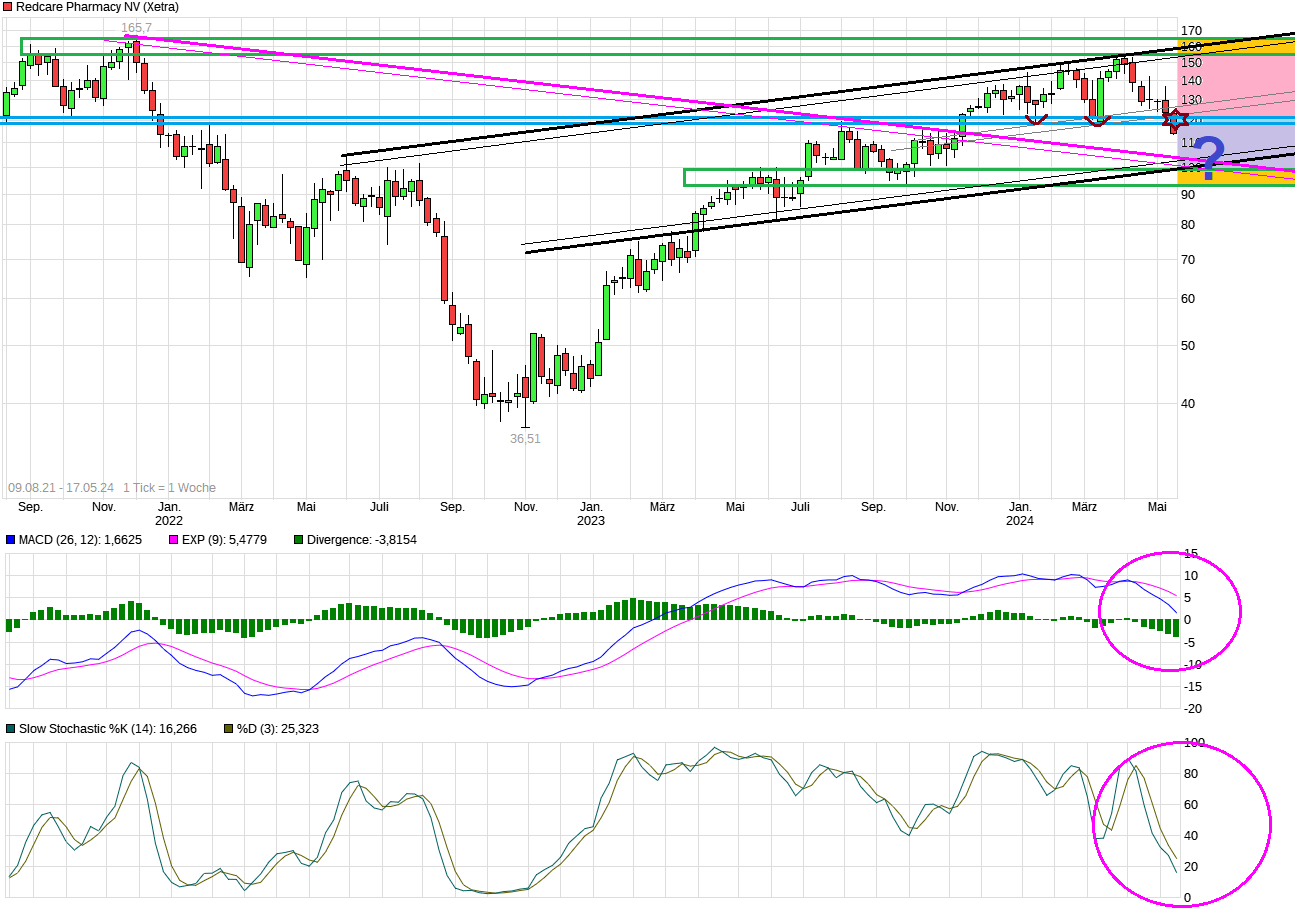 " Aus technischer Sicht droht jetzt eine Beschleunigung des Abwärtstrends. Gibt es nicht zeitnah eine tschnische Gegenbewegung, dürfte der Unterstützungsbereich um 110 Euro in den Fokus rücken. Sollte auch diese Marke nachhaltig unterschritten werden, könnte Redcare sogar wieder in den Bereich von 100 Euro fallen. "