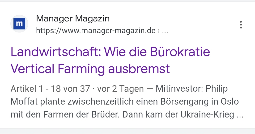 Zwei Bauern führen erfolgreich seit zehn Jahren eine Vertical Farm in den Niederlanden. 2015 kamen sie auf die Idee, für 70 Millionen Euro auch in Deutschland eine Farm in die Höhe zu bauen. Seitdem kämpfen sie mit der Bürokratie..." Scheinbar sollte die Firma in Oslo an die Börse gebracht werden (siehe Screenshot). Ach ja, und dann war ja noch die Cleanventure AG...