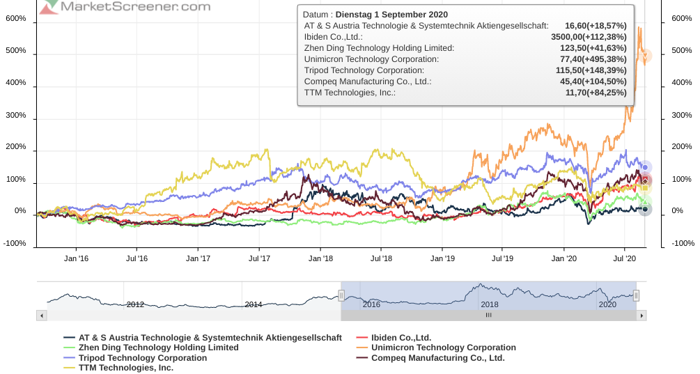 etwas hoch gegriffen vom vorstandschef Gerstenmayer, s. oben 05.08.20, HAUPTAKTEURE IM HDI-LEITERPLATTEN-MARKT: die größten player im markt für high density interconnect (HDI) -leiterplatten (engl. HDI Printed Circuit Board Market) sind, sortiert nach aktueller marktkapitalisierung in US$: