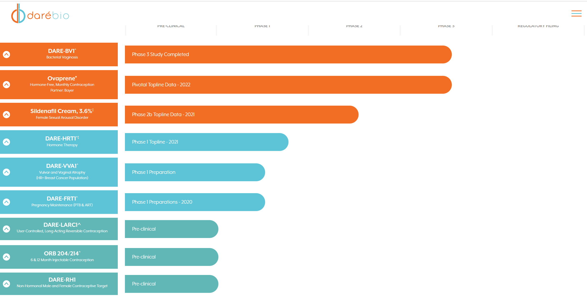 Daré hat derzeit ein von der FDA zugelassenes Produkt, XACIATO ein Antibiotikum, welches zur Behandlung von bakteriellen Unterleibsproblemen eingesetzt wird.