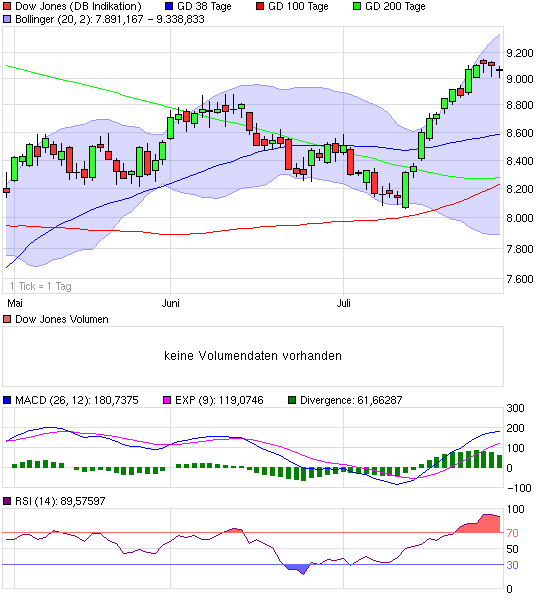 ordentlich gepuscht. Man will unbedingt nach oben, die Unternehmenszahlen geben das eigentlich nicht her. Die Asiaten sind auch nicht so starkt heute morgen wie das die US-Futures vorgaukeln. Die Märkte DOW und DAX sind überkauft und sollten 150-200 Punkte korrigieren. Es könnte danach nochmal etwas aufwärtsgehen.