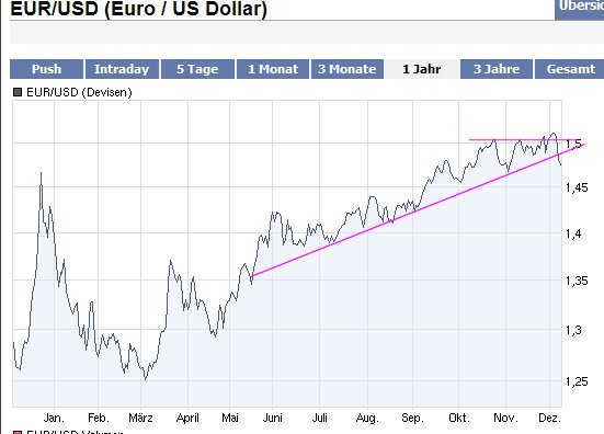 Die richtig große Abwärtsbewegung hat eigentlich noch gar nicht stattgefunden und so denke ich haben wir kurzfristig Luft bis mind. 1,40, bis sich dann der EUR/USD vermutlich stabilisieren kann.