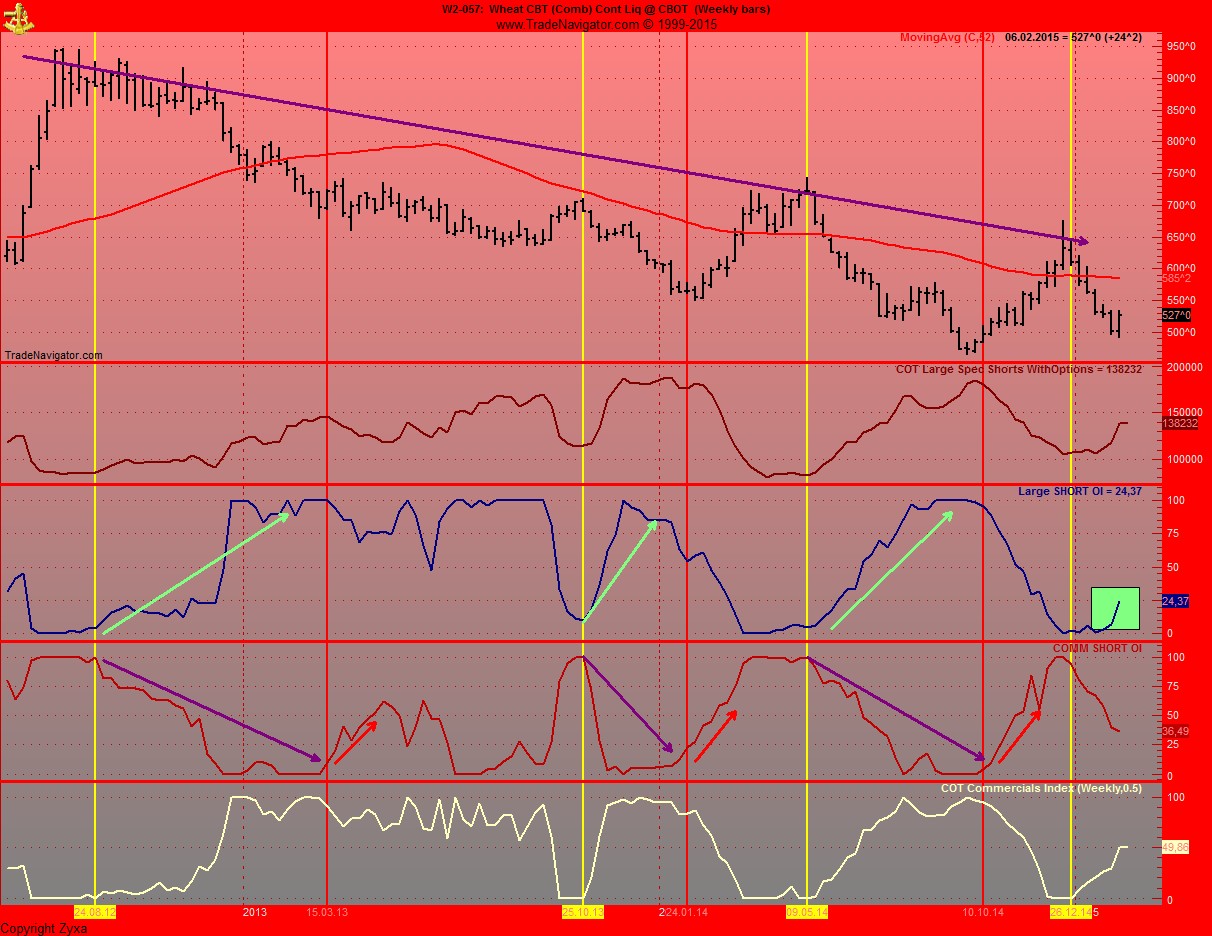 Zum 2ten cancle schleunigts dein Long auf Weizen, denn du Wettest gegen die Commercials und gegen die Shorts der Hedgefonds.