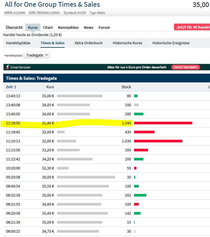 Dass ausgerechnet heute wo der DAX sich erholt, hier der DIV Abschlag den Kurs unter die Unterstützung brachte. Daher die fehlenden Käufer.
