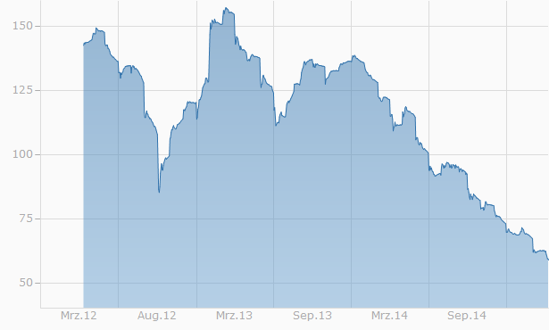 Innehalb von 2 Jahren hat sich der Eisenerzpreis fast gedrittelt.