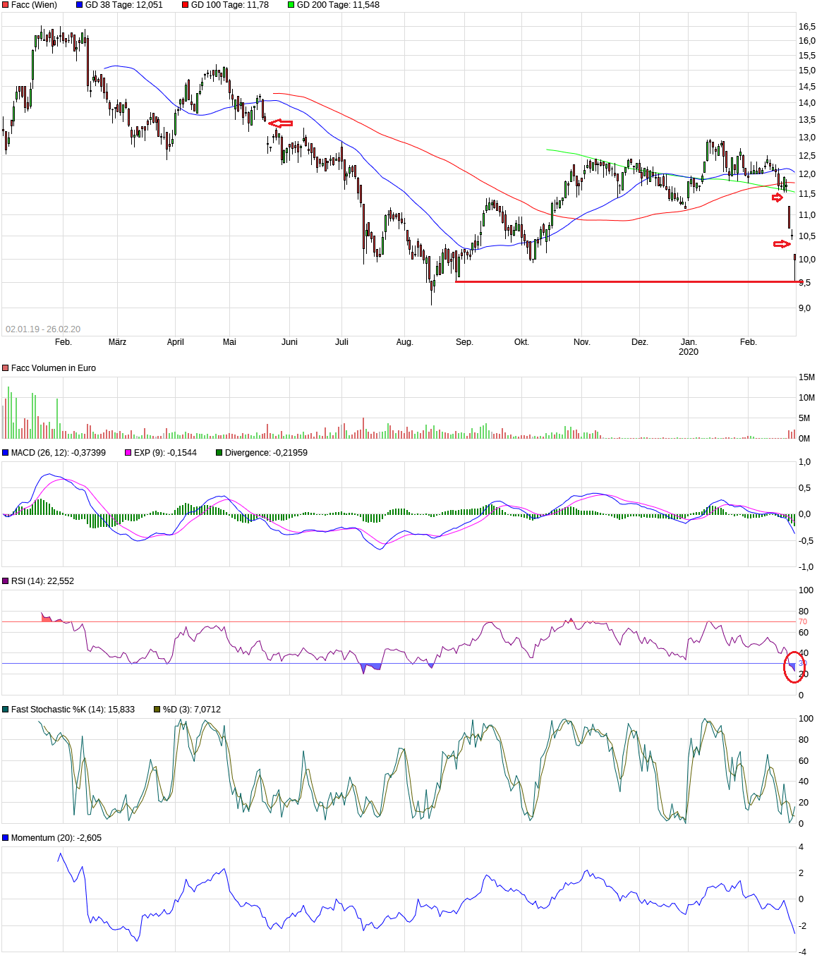 deutlich zu sehen, dass die Aktie überverkauft ist, dass mehrere Gaps offen sind und die Unterstützungslinie bei 9,50 Euro.