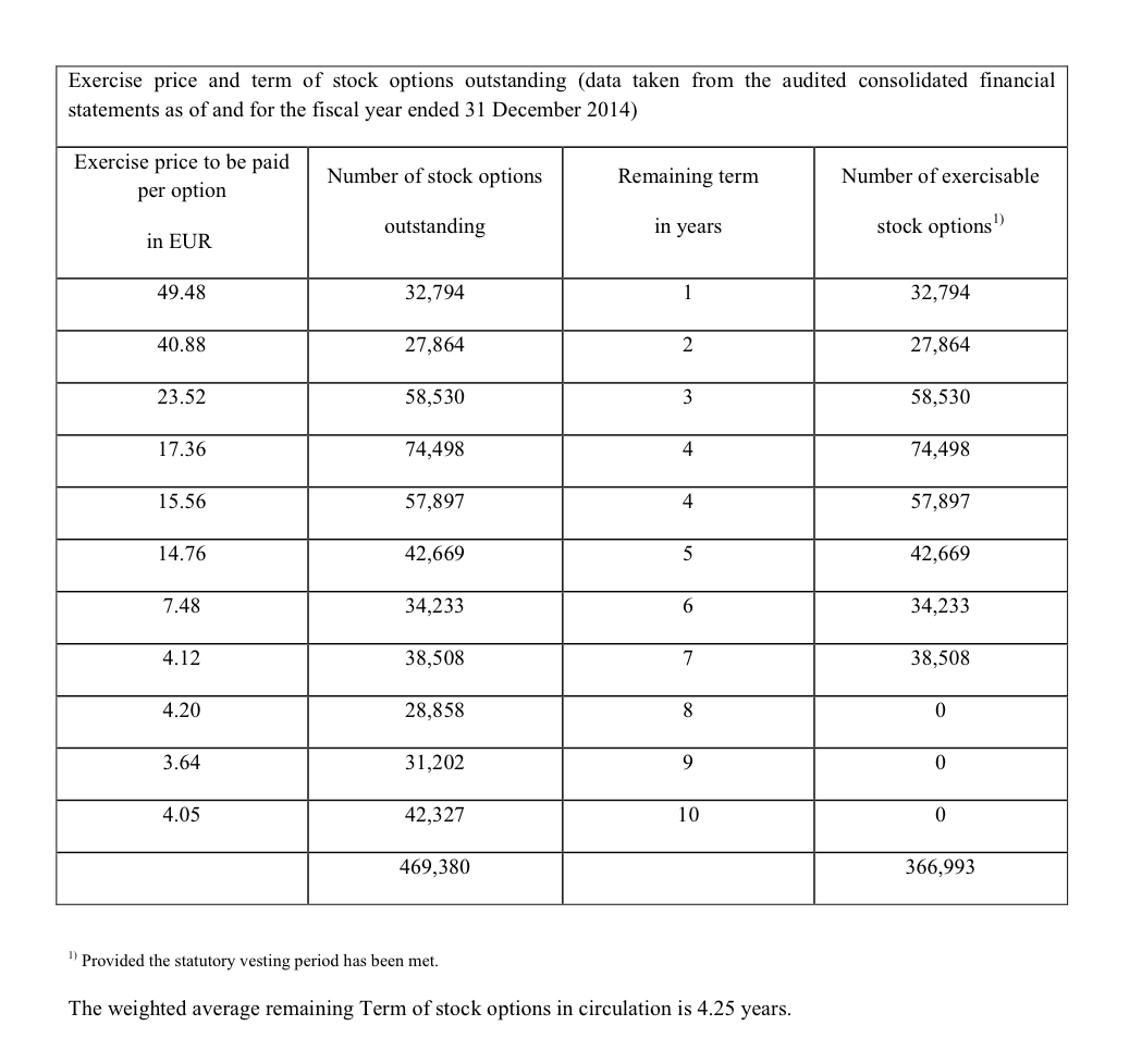 Da zudem die neuen Aktien mindestens bis zur HV (laut Prospekt vermutlich am 13.8) unter einer anderen WKZ gehandelt würden, bringen die ebenfalls nix und es dürfte trotz Sommerflaute eng werden, bei vielleicht maximal noch 40% der 15 Millionen Altaktien im Freeflow ausreichend Stücke zurückzubekommen. Insofern könnten die im Augenblick einige irrsinnig anmutende Preise für alte Boni des Managements von 40,88 und 49,48 Euro vielleicht doch noch attraktiv werden bevor sie in 1-2 Jahren verfallen. (Börsenprospekt Seite 77)