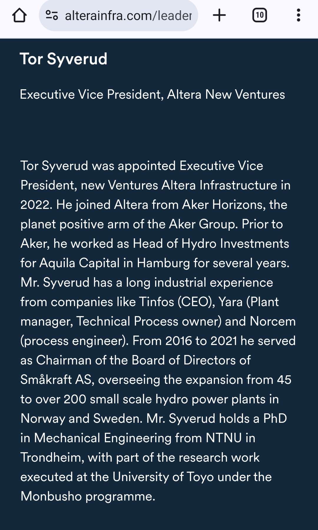 war bis 2022 Head of Hydro Investments bei Aquila Capital in Hamburg, die erst vor zwei Tagen mehrheitlich von der Commerzbank übernommen wurden.