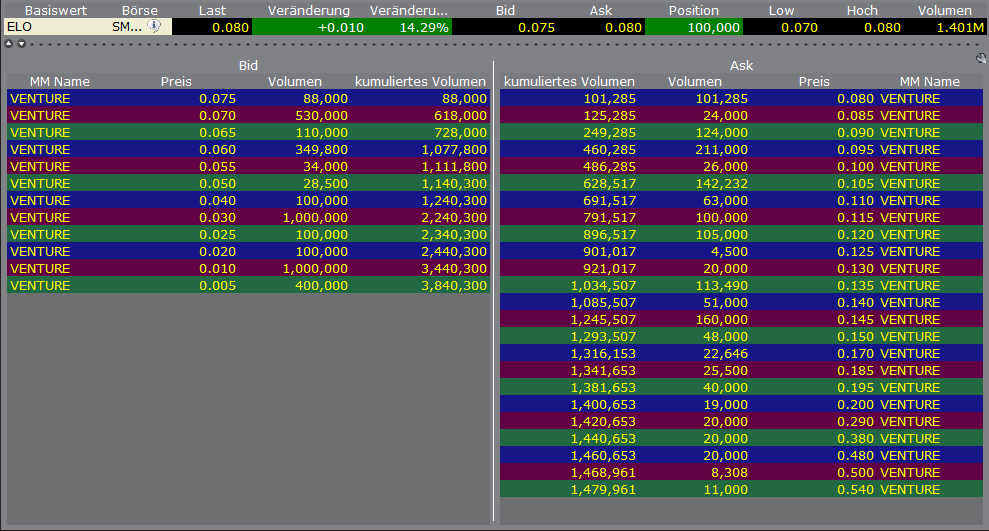wenn ich mir den Chart der letzten 3 Monate ansehe, dann sieht man da im Volumen ganz gut, das ab Mitte März mehr gehandelt wurde. Genau zu dem Zeitpunkt als Megastar die Eloro Aktien ausgeschüttet hat. Aber ein Silberstreif am Horizont ist zu sehen. Der MACD Indikator dreht nach oben. So ausgebombt wie die Aktie im Moment ist, kann das auch sehr schnell wieder drehen, schließlich gibt es jetzt sehr schöne Kaufkurse und alle warten nur auf das Signal nach oben.