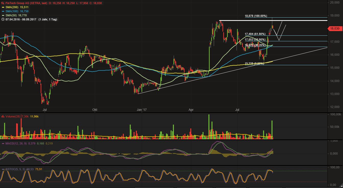 Das war lediglich eine rein charttechnische Betrachtung, dass es wohl nochmal in den tiefen 17er Bereich gehen könnte, insbesondere wenn der Markt weiter angeschlagen gewesen wäre. Seit 2-3 Tagen ist der Dax nun nach oben ausgebrochen und Fintech hat sich wieder nach oben gearbeitet und scheint nun den Widerstand bei 18,6-18,7 € endlich nachhaltig zu durchbrechen. Freut mich umso mehr, zumal ich extra nachgekauft hatte. Aber es hat doch niemand von einer Wesheit gesprochen, wenn man sich mal den Chart auf kurzfristiger Basis anschaut. Das ändert ja an der fundamentalen Einschätzung zur Aktie nichts.