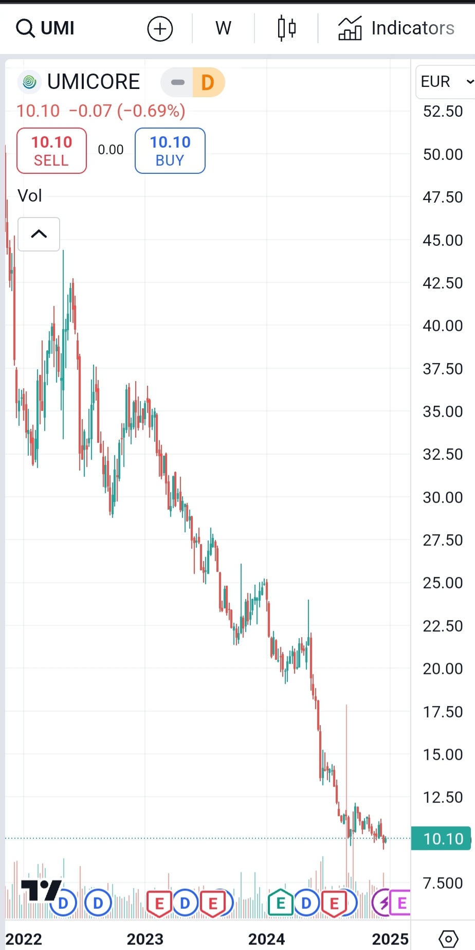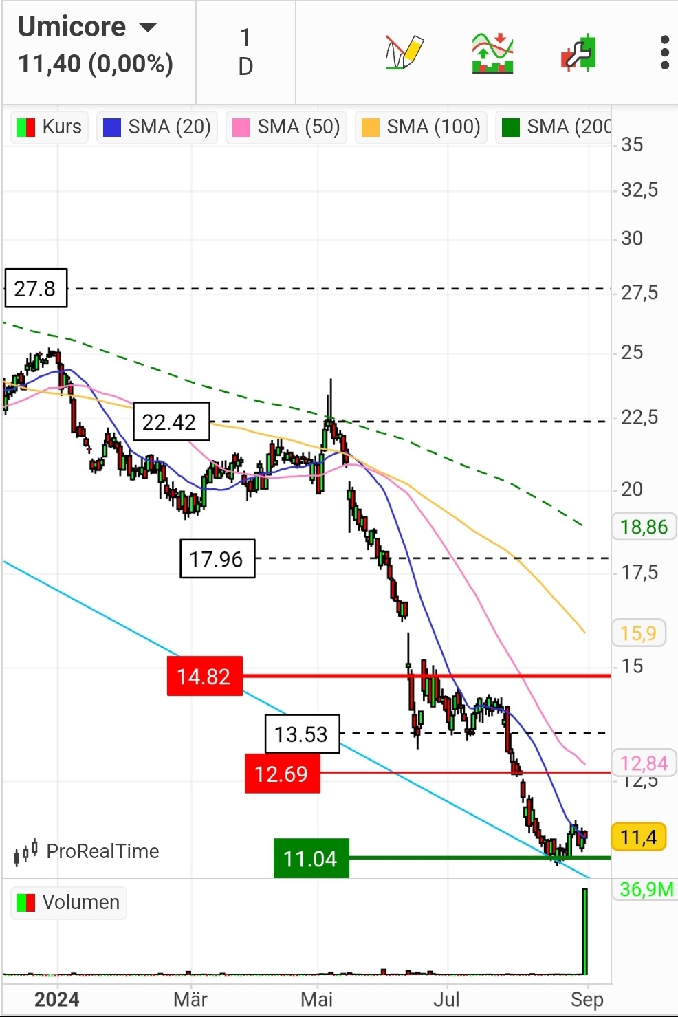 Ich bin auch in Umicore investiert und bleibe investiert. Sollte der Kurs weiterfallen, werde ich auch nachkaufen.
