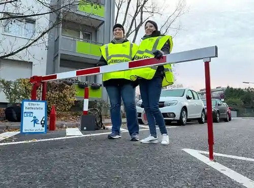 Ziel ist es hierbei die Elterntaxis zu verhindern. Die Elterntaxis müssen draußen bleiben und können ihre Kinder nur noch zu gewissen Zeiten an den entsprechenden Haltepunkte abliefern. Kontrolleure stehen an den Schranken und überwachen alles.