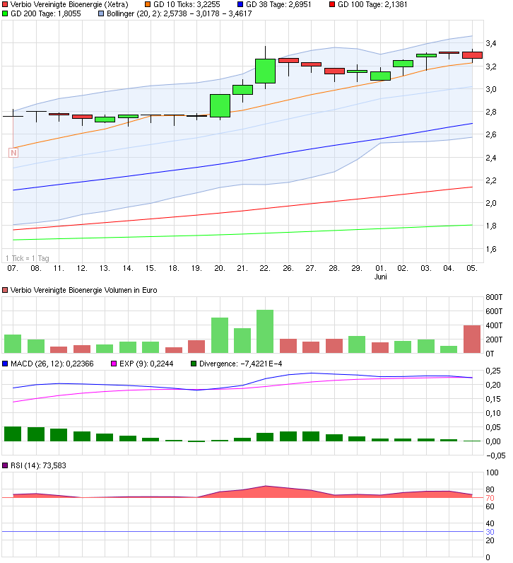 Grundsätzlich hast du recht, dass es im Moment stark abgekoppelt verläuft zu den anderen Gesamtmärkten. Aber ganz ehrlich: Es besteht zu den allermeisten Märkten auch kein all zu grosser Zusammenhang. Nur dass Verbio glaube ich Öko-Dax gelistet ist, welcher sich (wahrscheinlich auch wegen Verbio ^^ ) ebenfalls schön entwickelt hat.