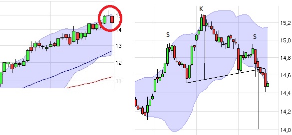 ein umkehrsignal nach candlesticks. evening doji star.