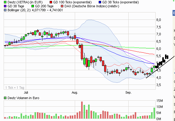 massiv steigen und ich bei Deutz nicht mehr drinnen bin, so eine Gemeinheit (ist nur ein Spass) .... Chartlady hatte mit ihren Progrnosen recht behalten - dafür ist aber SAF Holland ganz schön gestiegen - DAX zieht ordentlich ab ... bleib aber trotzdem am Seitenrand und hoffe auf günstigere Einstiege - dass jetzt alles heppi ist, wäre ein Wunder