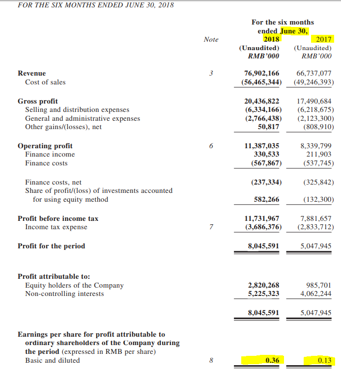 Gewinn etwa wie erwartet um 176% gestiegen von 0,13 RMB auf 0,36 RMB je Aktie gestiegen