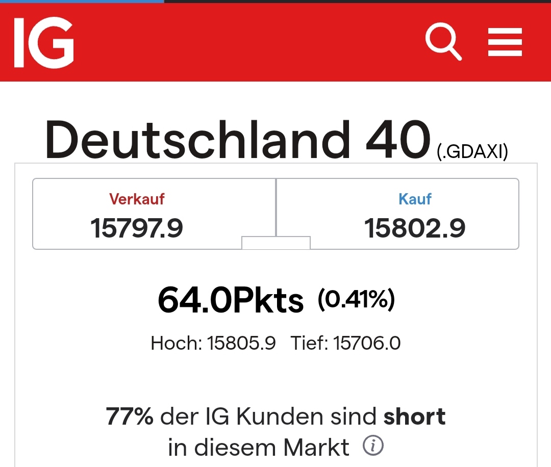 Bin LONG eingestellt Sehr hohe Short Quote treibt ... Ziel 15900 SL 15600 |