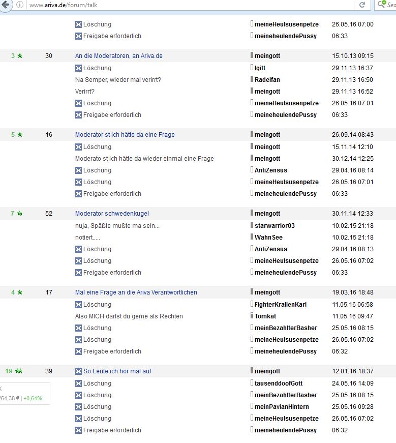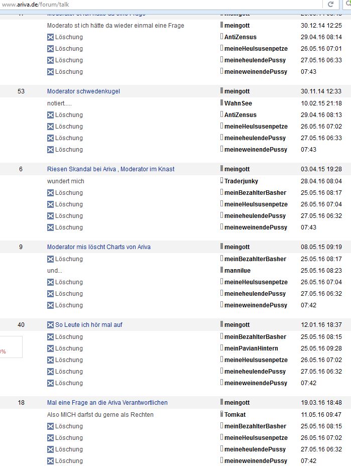 Zwar kann Ariva den aus einem Gedicht von 1917 entnommenen, von den Nazis als Parole verwendeten, hier in einen Usernamen umgemünzten Aufruf "Deutschland erwache" anscheinend nach freiem Ermessen und ohne stichhaltige Begründung aus dem Forum entfernen.