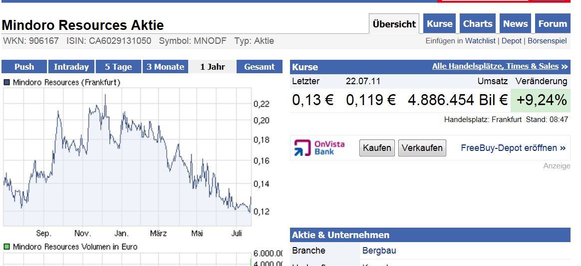 Die gestrige Nachricht, von den neuen Bohrergebnissen ist in Kanada eigentlich ganz gut aufgenommen worden. Was mich aber stört (die Börse aber momentan noch nicht) ist die Tatsache, dass sich Gold Fields als Joint Venture Partner zurück zieht. Schon wieder mal ein Joint Venture, dass bei Mindoro nichts wird....
