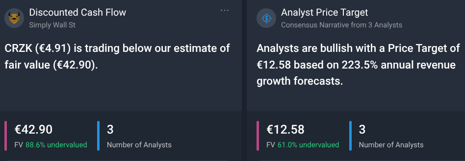 After last week's 19% share price gain to €6.52, the stock trades at a forward P/E ratio of 2x.