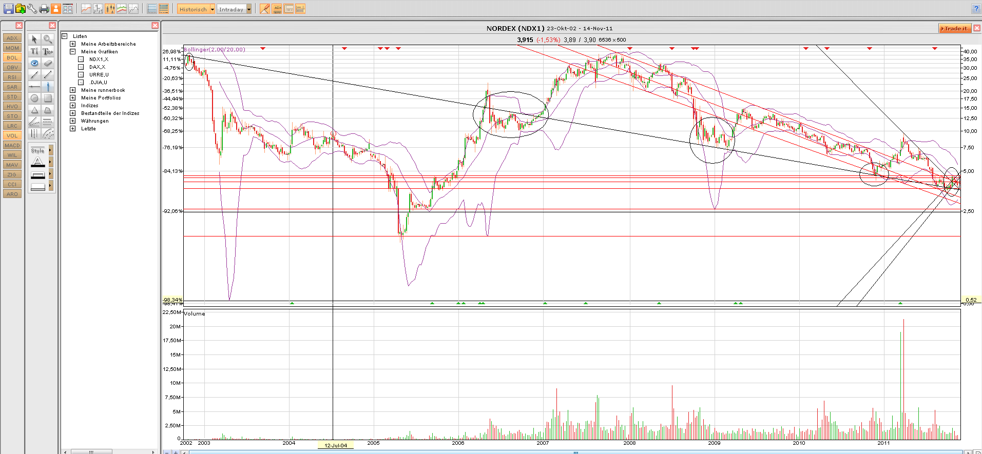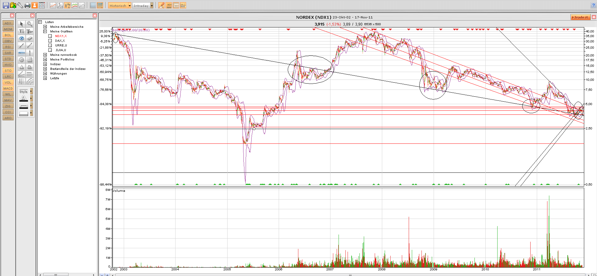 beachten und die erste rote Abwärtslinie. Ich sag gleich mal, weil du fragst so und so wieder