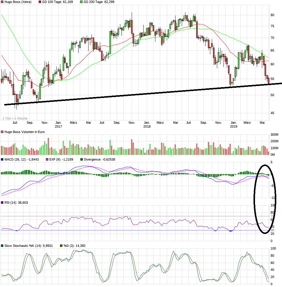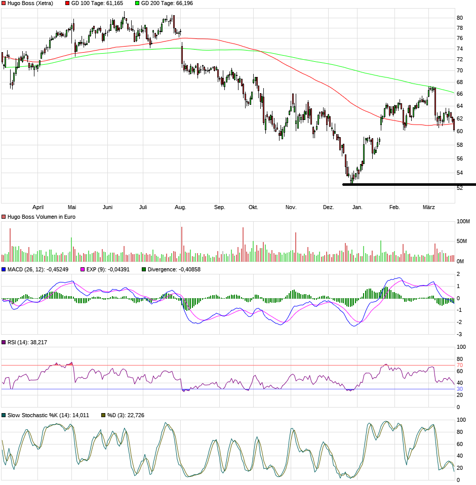 Wird diese in den kommenden Handelstagen gen Süden hin aufgelöst, wäre mit Anschlussorders auf der Unterseite und einer Verkaufswelle in den Bereich 59 bis 60 EUR zu rechnen. Dies ist das kurzfristig favorisierte Szenario, so lange den Bullen kein Ausbruch über den EMA200 gelingt.