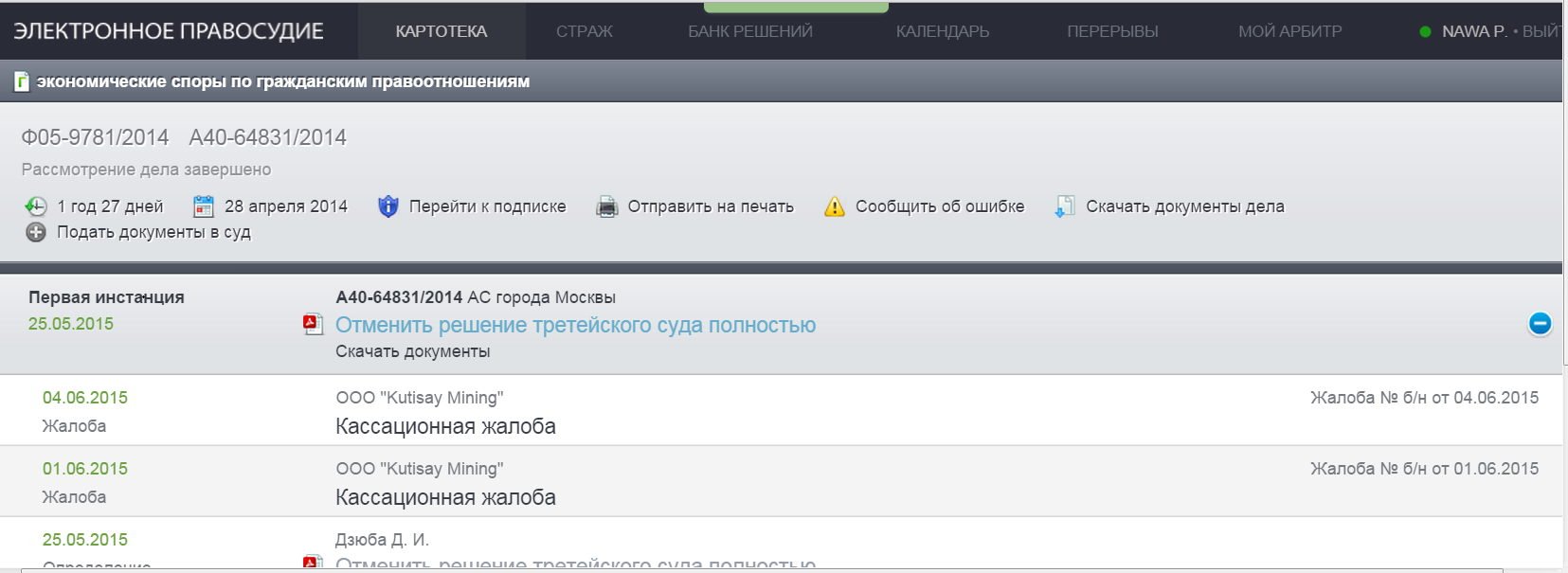 25.05.2015 г. Дело № А40-64831/14