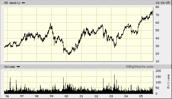 Ich glaube, die Situation ist vergleichbar mit Philip-Morris/Altria (NYSE: MO) im Frühjahr 2000. Da stand MO auf knapp 20 USD - aus Angst vor einem potenziell verheerenden Gerichtsurteil in Florida. Die Angst war unbegründet: Heute steht MO auf 73 (siehe 10-Jahres-Chart unten).