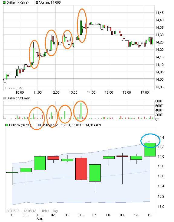 zu sehen, dass der Kurs in den letzten Wochen immer mit großen Käufen hochgezogen wird. Wer mit 5-10k pro Trade bei den Kursen hier einsteigt, weiß mehr, will mehr und kann mehr. 50-150k€ sind kein Pappenstiel! Vor 10 Jahren waren wir aus dem Häuschen wenn wer mit 1k DRI gekauft hat!