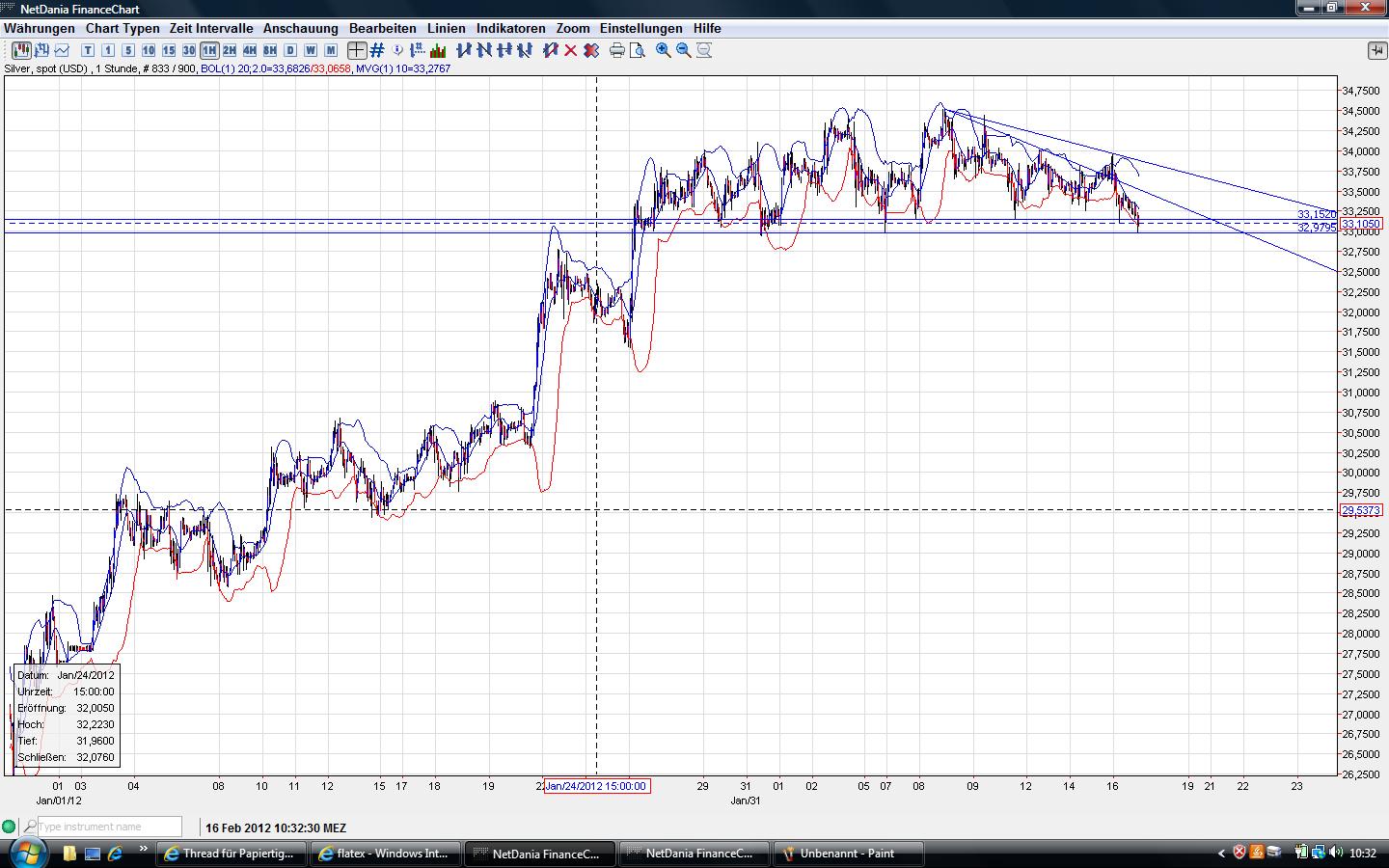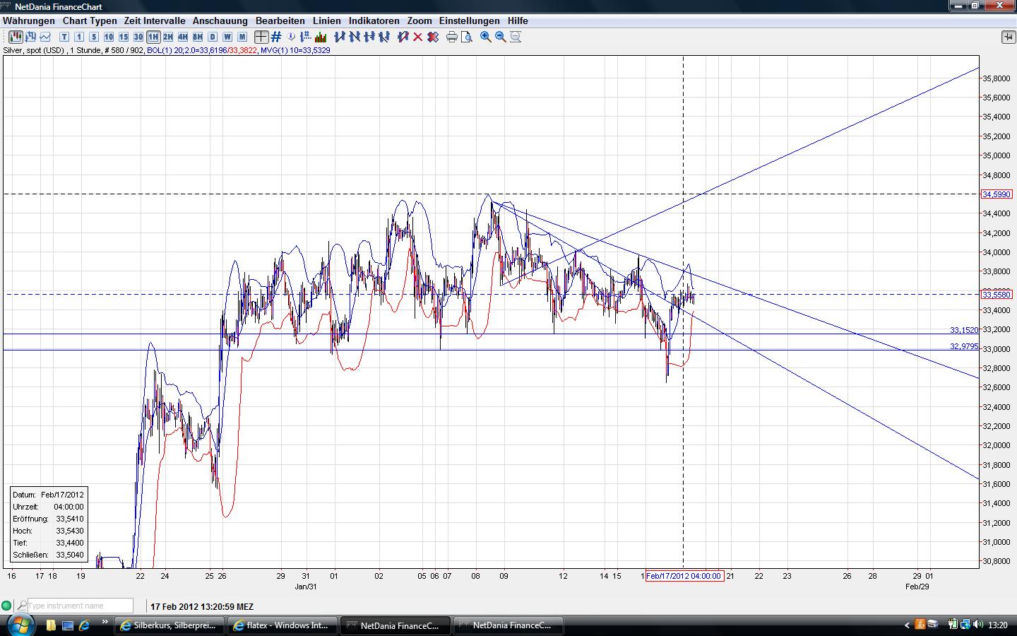 werden.solange silber unter 33,65 gehandelt wird sieht es bearish aus,da der kurzfristige abwärtstrend(trendkanal) intakt ist